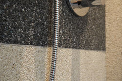 On wet floors, we use Porefiller for waterproofing. After Porefiller application, granule texture will be same but it will be waterproof. For more information about Porefiller ( Open - Close Pore System ) please click here..